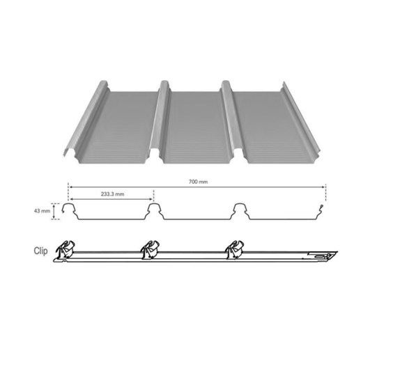 The KLIP-LOK 700 fixing clips secure support sheets without puncturing them. It is designed to enable thermal expansion of straight, long runs while providing excellent water-carrying capacity. There are no exposed fasteners, which ensures clean, smooth lines and maximum water tightness. No holes are pierced through the cladding, which gives it excellent weatherproof performance. In addition to COLORBOND steel colours, it is also available in unpainted ZINCALUME steel. Roofs can be laid faster and more economically with easy-to-install fixing clips. The clip covers the entire width of the sheet, 700mm.